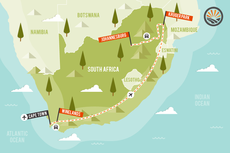Our 11-day experience through South Africa guarantees to showcase this country in all its glory. From the cosmopolitan, postcard-perfect city of Cape Town, to the expansive country estates of the Winelands, to the world famous safaris of Kruger park, before finishing in the big, busy metropolis of Johannesburg.