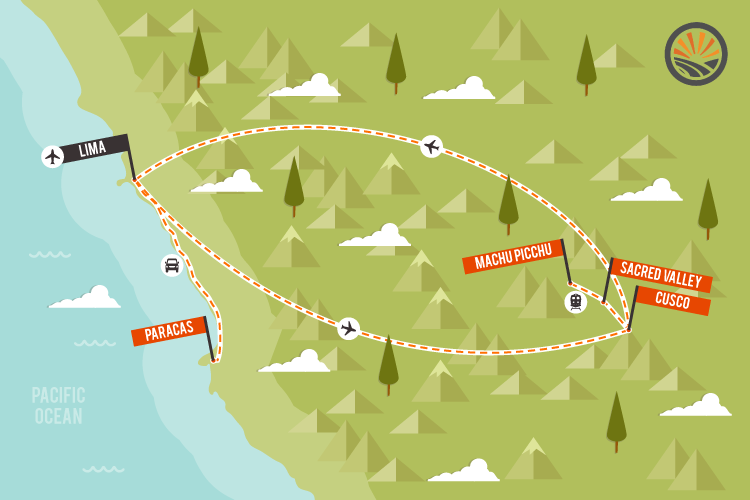 Our journey blends Detours’ laid-back style with Peru’s most remarkable highlights. Step into the cloud-covered ruins of Machu Picchu, ride a scenic train through the Peruvian Andes, and discover the desert oasis of Huacachina. Venture off the beaten path to the wildlife-filled Ballestas Islands, where penguins and sea lions share the rocky shores, and feel the history in every alley and marketplace.